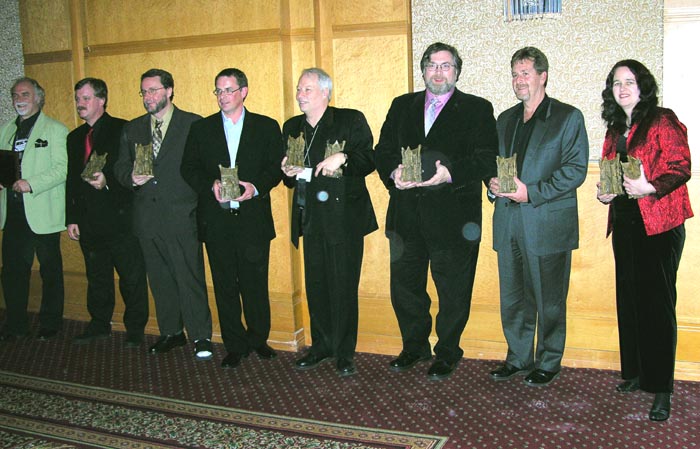 The winners: Nancy Holder, Kathe Koja, Melanie Tem, David Morrell, Gahan Wilson, and Stephen Jones. Photo courtesy of Stephen Jones.