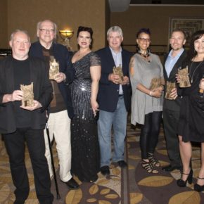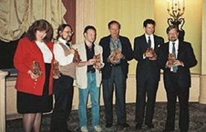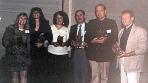 The winners: Nancy Holder, Kathe Koja, Melanie Tem, David Morrell, Gahan Wilson, and Stephen Jones. Photo courtesy of Stephen Jones.