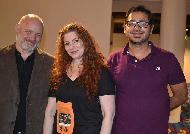Nathan Ballingrud, Damien Angelica Walters, and Usman Malik at the World Horror Convention/Bram Stoker Awards 2015 in Atlanta. Photo by Ellen Datlow.