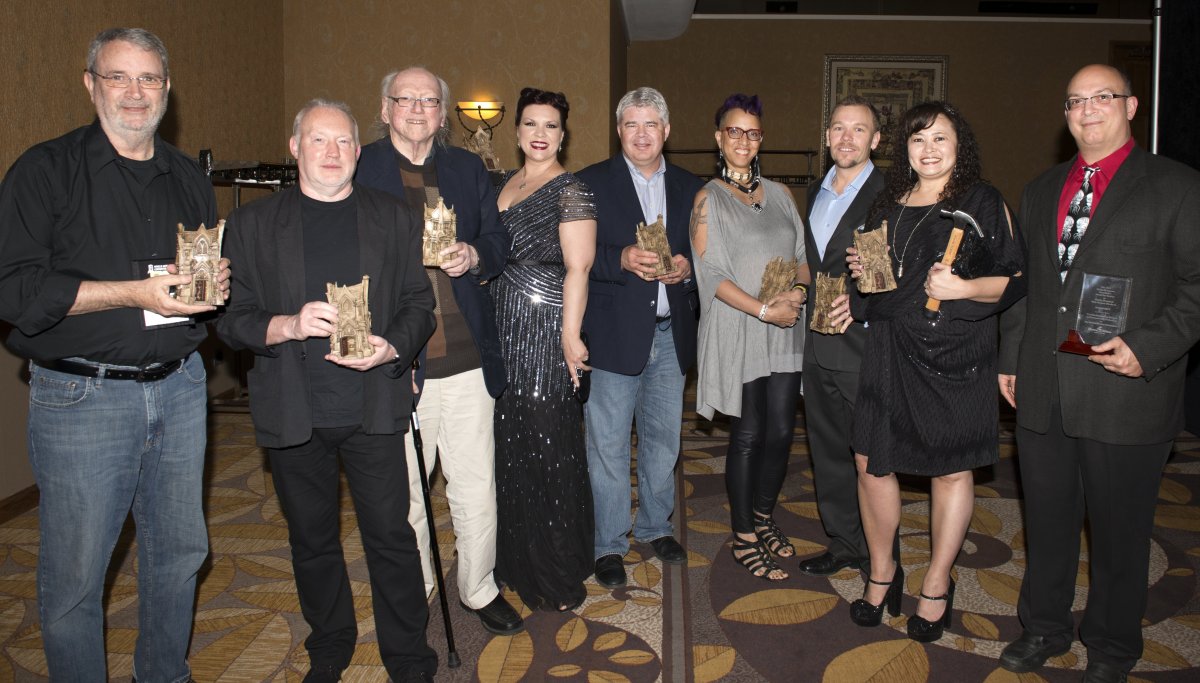 David Gerrold, William F. Nolan, Rain Graves, Joe McKinney, Linda Addison, Eric Guignard, Rena Mason, and JG Faherty at the 2014 Bram Stoker Awards,held during the World Horror Convention in Portland, Oregon.