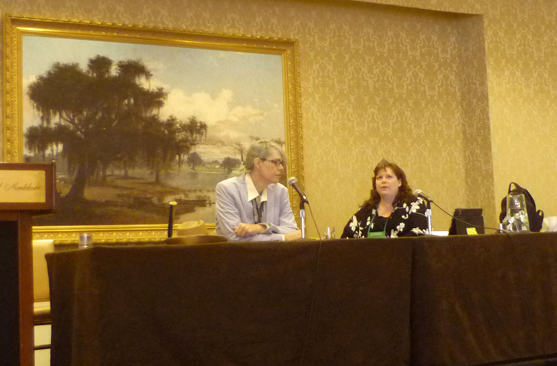 Chelsea Quinn Yarbro and F. Paul Wilson during the presentation.