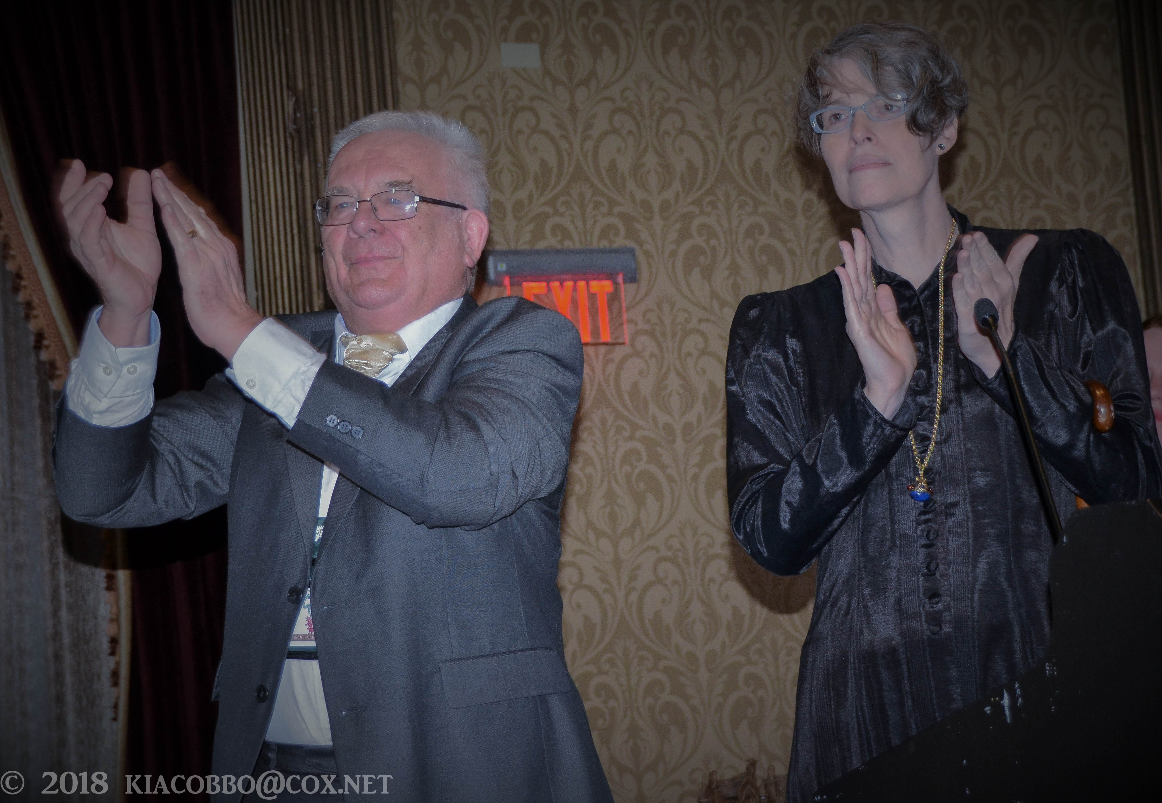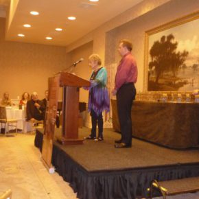 Marge Simon and Vince A. Liaguno during the awards presentation. Photo by Lisa Morton.