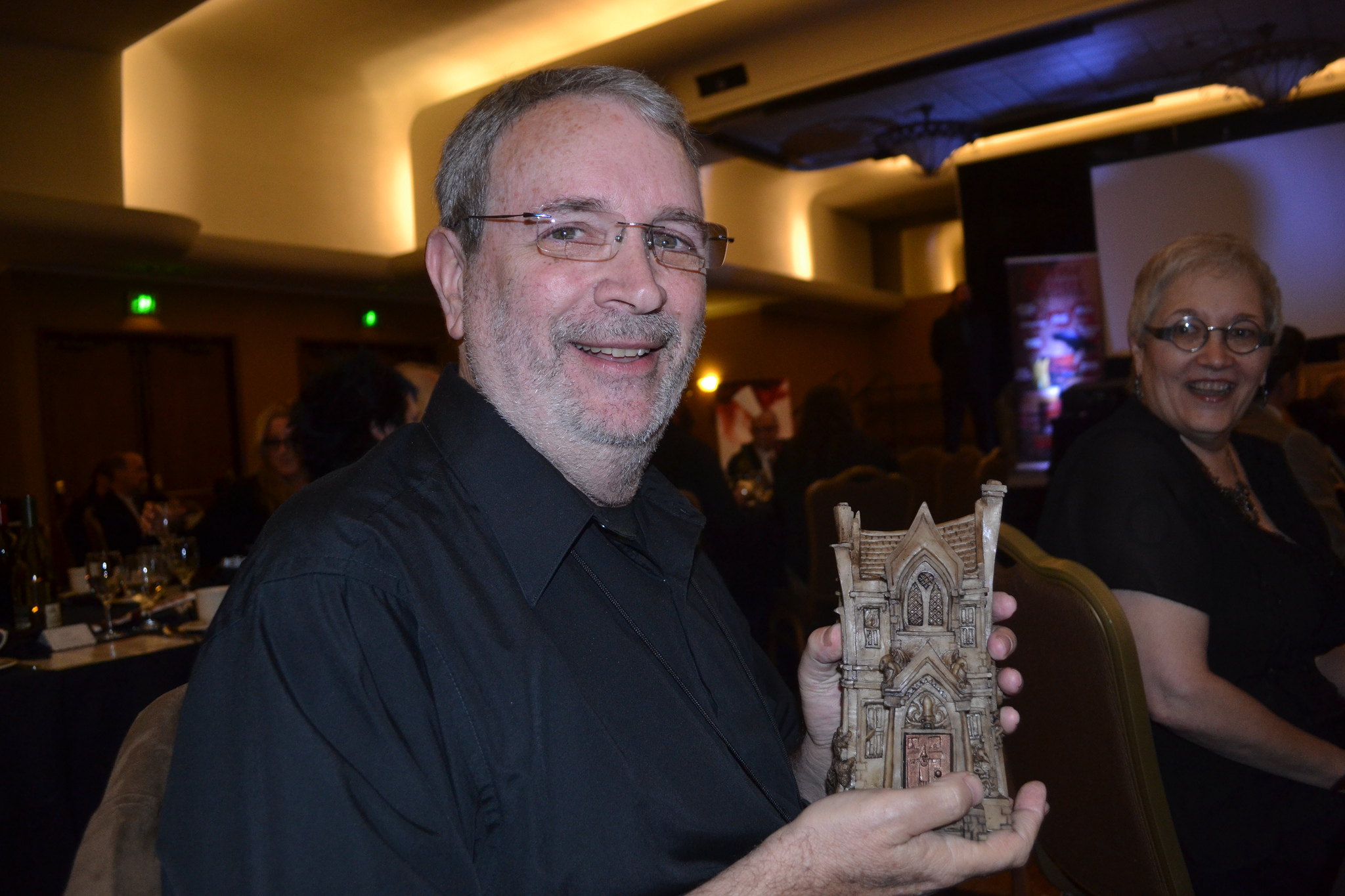 David Gerrold with his Stoker for Short Fiction. Photo by Ellen Datlow.