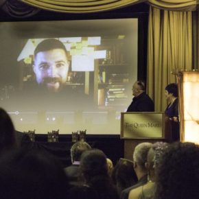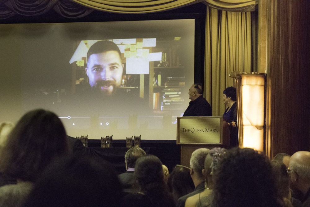 Video acceptance by Robert Eggers for the Screenplay Award. Photo by Dave Duffy.