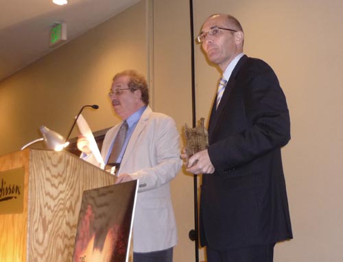 Dacre Stoker and Jeremy Wagner present The Vampire Novel of the Century Award. Photo by Lisa Morton.