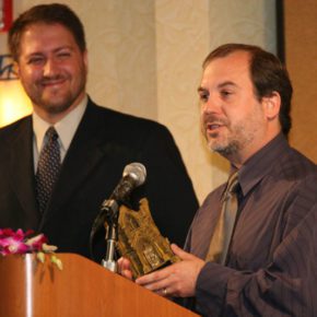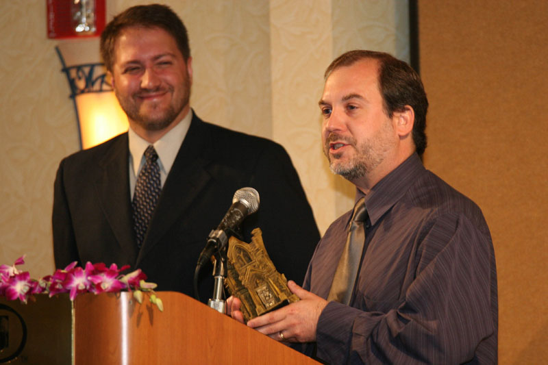 Joe Nassise and John Everson onstage during the award presentation.