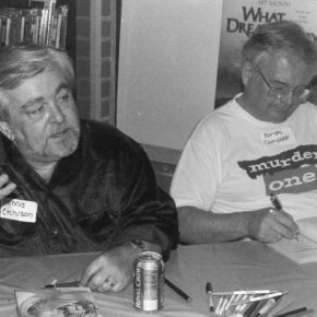 Dennis Etchison and Ramsey Campbell signing at Dark Delicacies during the 1999 event. Photo by Lisa Morton.
