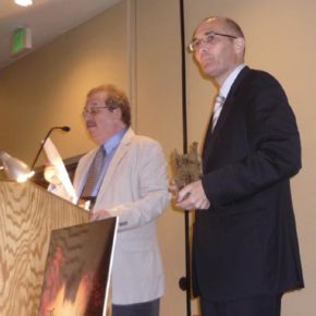 Christopher Golden and F. Paul Wilson present at the Bram Stoker Awards. Photo by Karen Iacobbo.