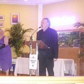 Becky Spratford and Leslie Klinger present the Non-fiction award at the Bram Stoker Awards. Photo by Karen Iacobbo.