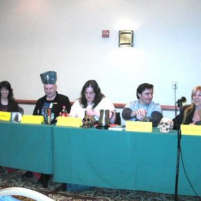 Poe panel with Kelly Dunn, Wilum Pugmire, ?, Hank Schwaeble, and Heather Graham.