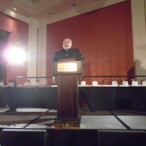 Jonathan Maberry presents at the Bram Stoker Awards. Photo by Seth Scranton.
