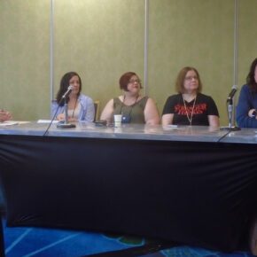 Social Media Panel: H. R. Boldwood, Meghan Arcuri, Beverly Bambury, Lucy A. Snyder, and J. D. Barker (Photo by Lisa Morton)